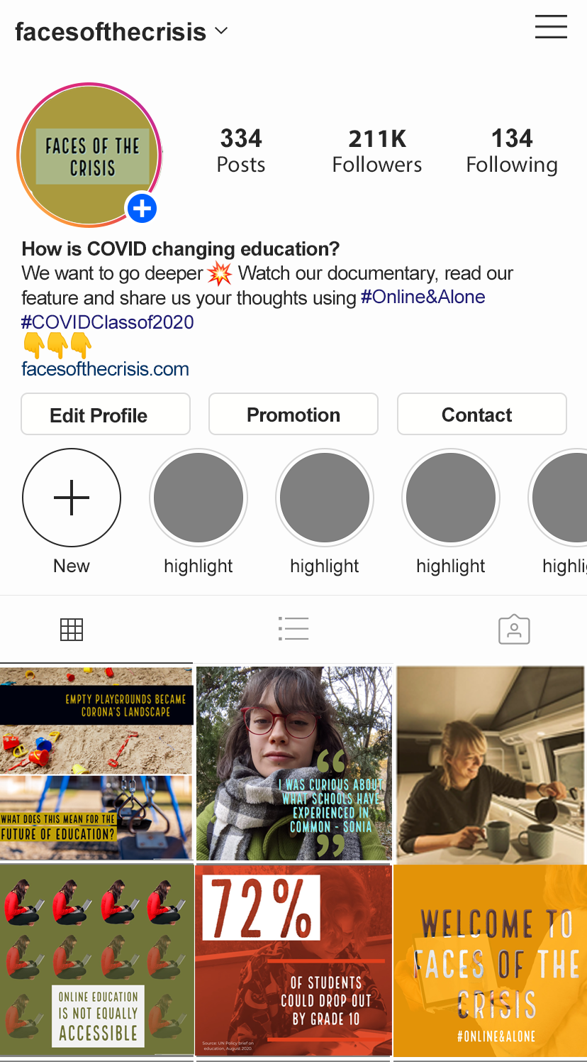 Social media content developed for the multi-platform project 'Faces of the Crisis', in which a group of journalists takes a deep look into how COVID is affecting the educational sector in Berlin.