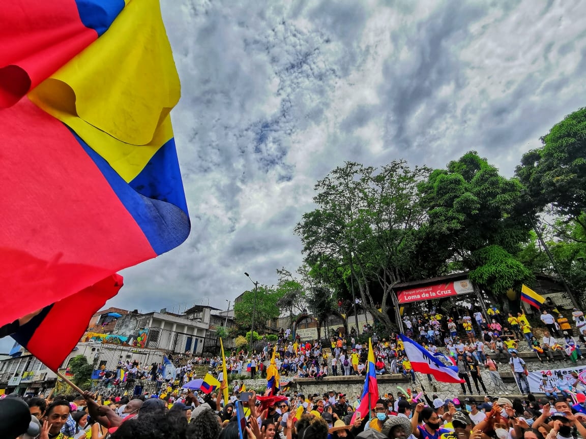 Protesters have been filling the streets of Colombia since April 28. The ongoing national strike started against the tax reform proposed by President Iván Duque’s government, which was later momentarily retired, but also for denouncing the constant massacre of social leaders and human rights defenders, the handling of the COVID-19 crisis, and overall discontent with the administration.